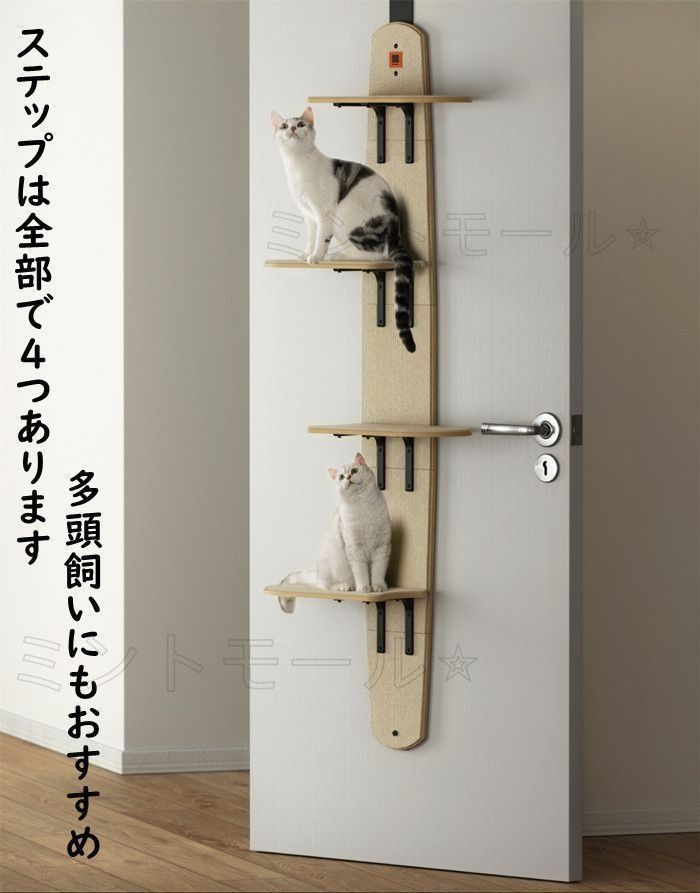 キャットステップ ドア掛け キャットタワー キャットウォーク 猫ステップ 猫グッズ 4段式 耐荷重10キロ 猫家具 多頭飼い対応 省スペース 木