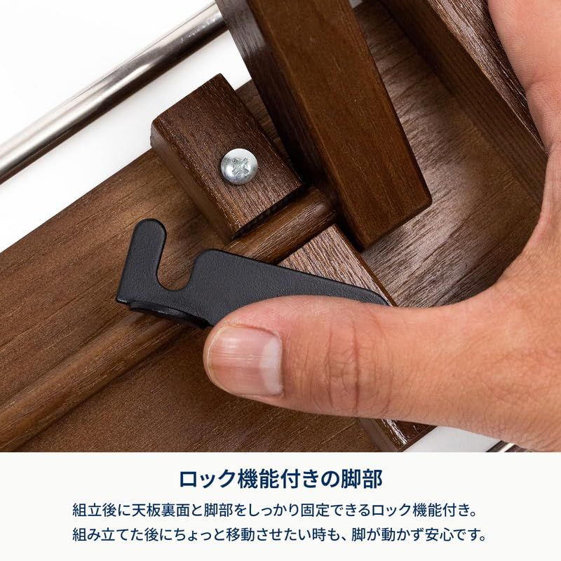 ?【ロック機能付きの脚部】組立後に天板裏面と脚部をしっかり固定できるロック機能付き。組み立てた後にちょっと移動させたい時も、脚が動かず安心です。