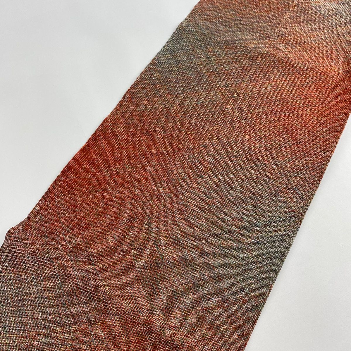名古屋帯 秀品 八寸名古屋帯 松葉仕立て ぼかし 金糸 茜色 正絹