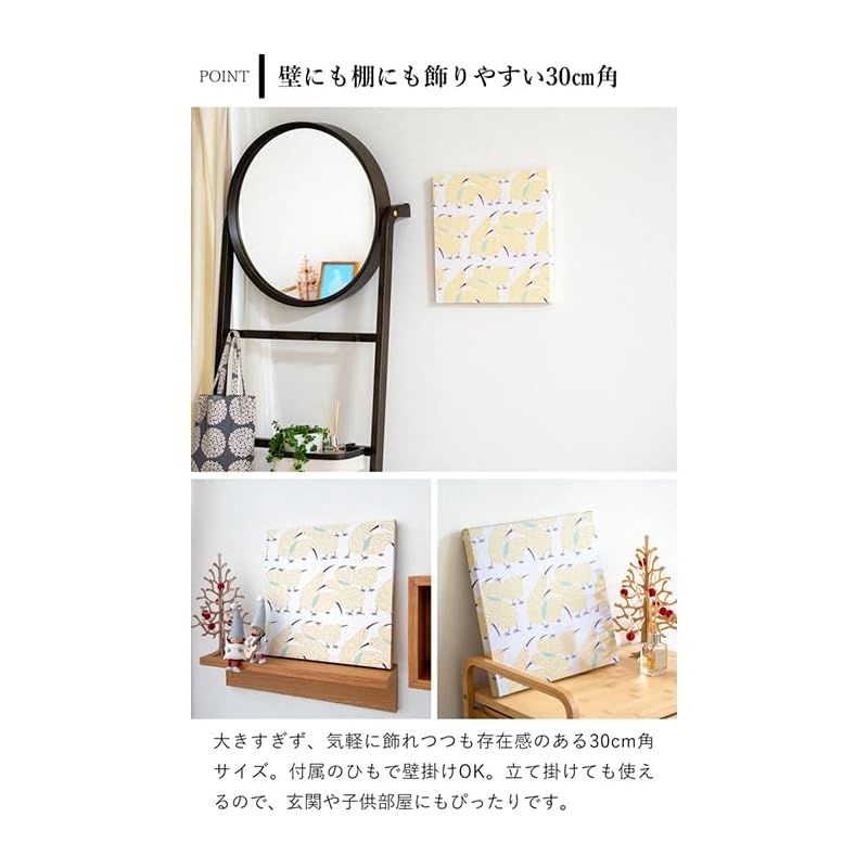 【空間の彩りにもぴったり】サイズは30cm角と飾りやすく、裏面の紐を通して市販のフック型の画鋲で壁掛けも可能。棚の上に立て掛けて飾ることもでき、リビング・玄関・子ども部屋などにぴったりです。