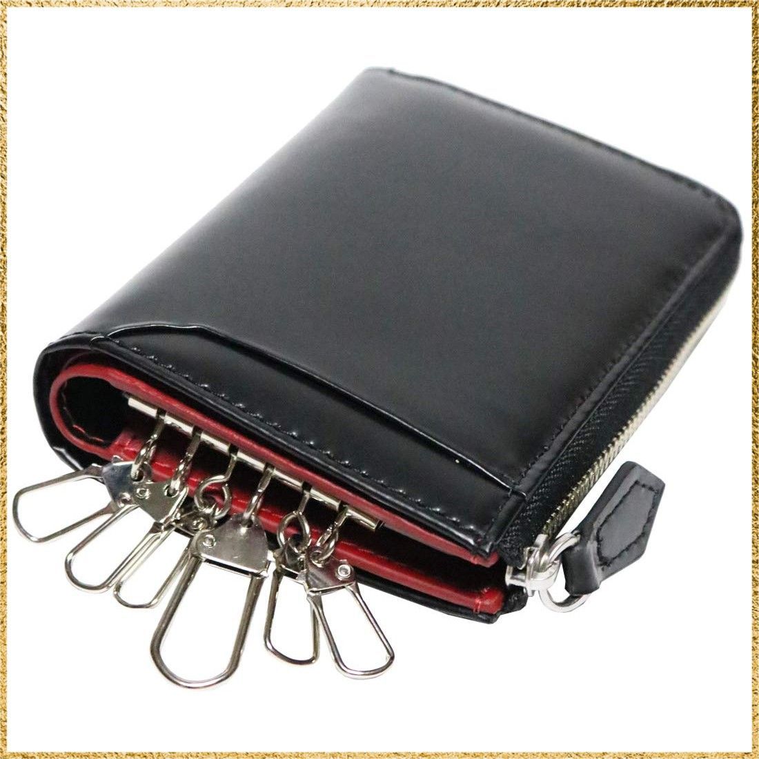 ☆彡送料無料でお届け☆彡Color:ブラック×レッド ブラック×レッド コードバン 馬革 馬皮 ホースレザー ホースハイド キーケース 鍵ケース メンズ レディース カード入れ スマートキーケース スマートキー対応 本革 ヌメ革 牛革 皮 6連 6本 キーリング キーホルダー 鍵入れ 車 人気 ブランド おしゃれ かわいい 可愛い ハンドメイド カード収納 ファスナー 小銭入れ 一体型 10467-100-168