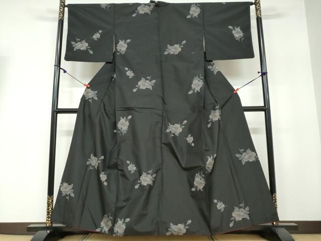 平和屋着物 上質な紬 舞花文 黒地 正絹 ud