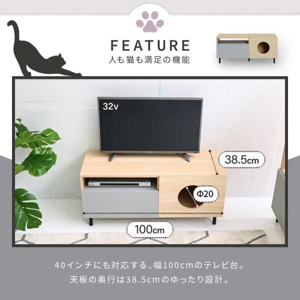 キャットハウス ねこ家具 おしゃれ テレビラック 猫が遊べる家具 リビングボード 薄型 扉付き 北欧 猫家具収納 猫家具テレビ台 猫インテリア avボード 猫と暮らすインテリア 猫インテリア家具 猫とインテリア 猫のインテリア テレビボード コンパクト 猫が喜ぶインテリア 猫トンネル サイドボード 30 インチ 32 型 37 40 42 ナチュラル グレー 幅100 奥行き 40 高さ 45cm