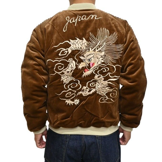 テーラー東洋 Tailor Toyo TT 15792-138 中綿入り 別珍 ベルベット スーべニアジャケット スカジャン WHITE DRAGON × BLACK EAGLE テイラー東洋