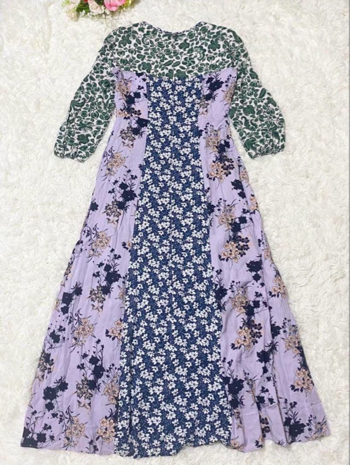 マックスアンドコー マキシ丈 花柄 パッチワーク ワンピース 40 L