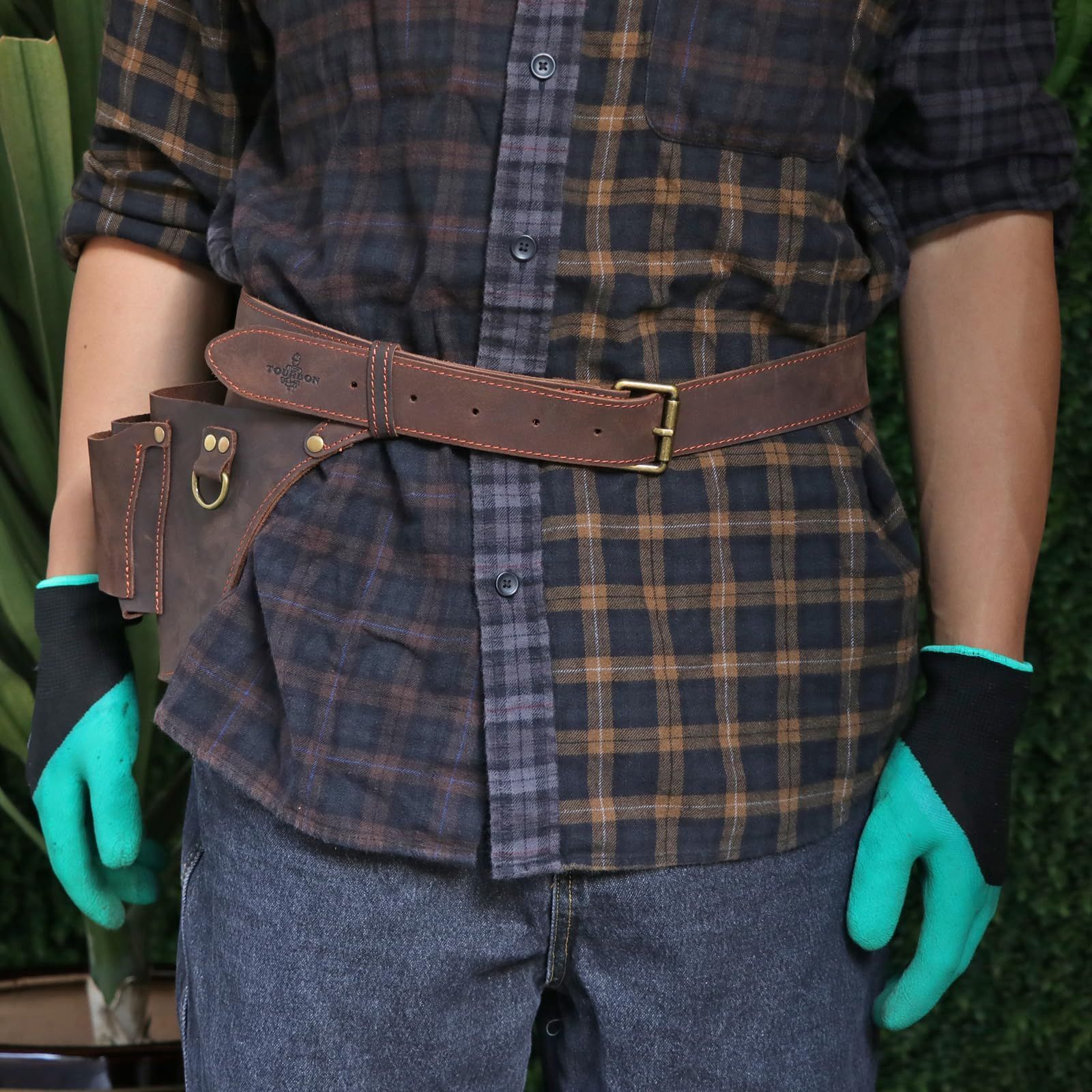 TOURBON ガーデニングポーチ バック 腰袋 園芸用品 ツールポーチ 花屋 シザーバック レザー
