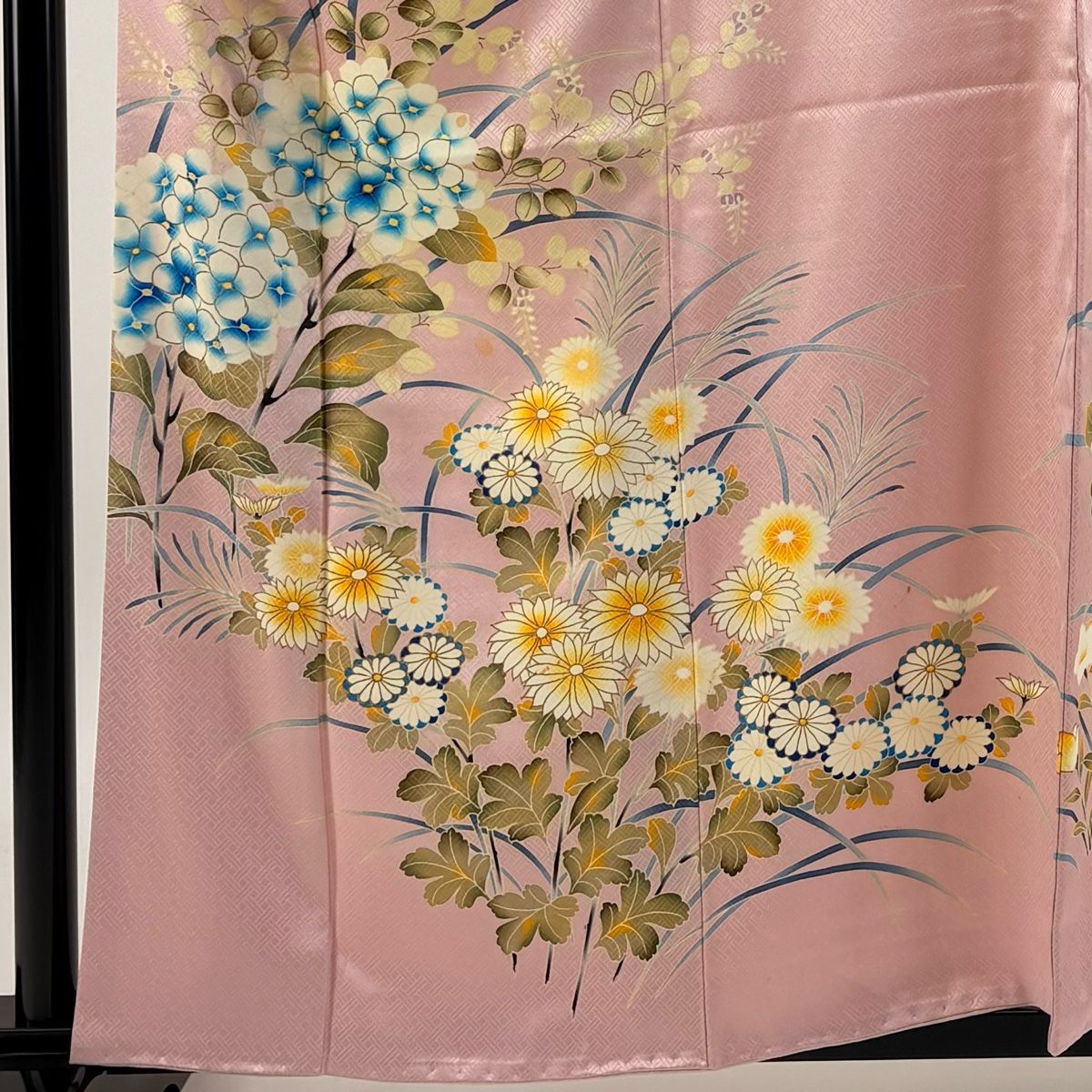 訪問着 身丈160.5 cm 裄丈66.5 M 袷 紫陽花 菊 金彩 ピンク 正絹 秀品