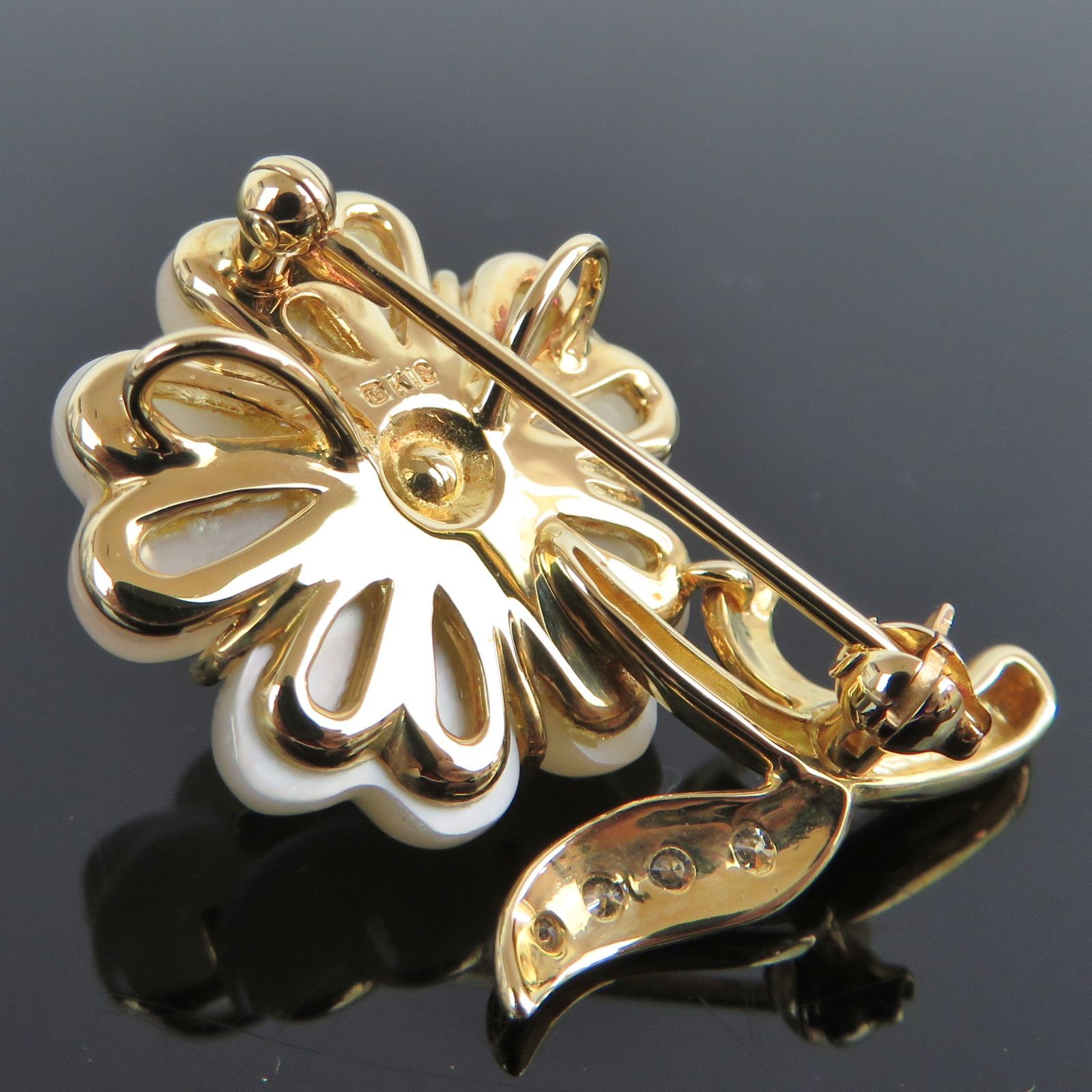 ミキモト ピンブローチ 7 mm アコヤ真珠 ダイアモンド シェル フラワーモチーフ ペンダントトップ ケース付き rk 10110