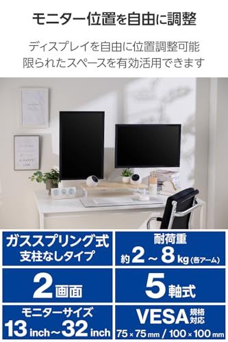 エレコム モニターアーム ディスプレイアーム ガス式 13 32インチ対応 VESA規格対応 耐荷重2 8 ホワイト DPA DL 08 WH c 4 ec 429 f