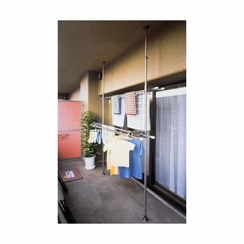 ・ベランダ用つっぱり式2段ものほし竿受け(専用竿掛け S/L 各1セット付き)