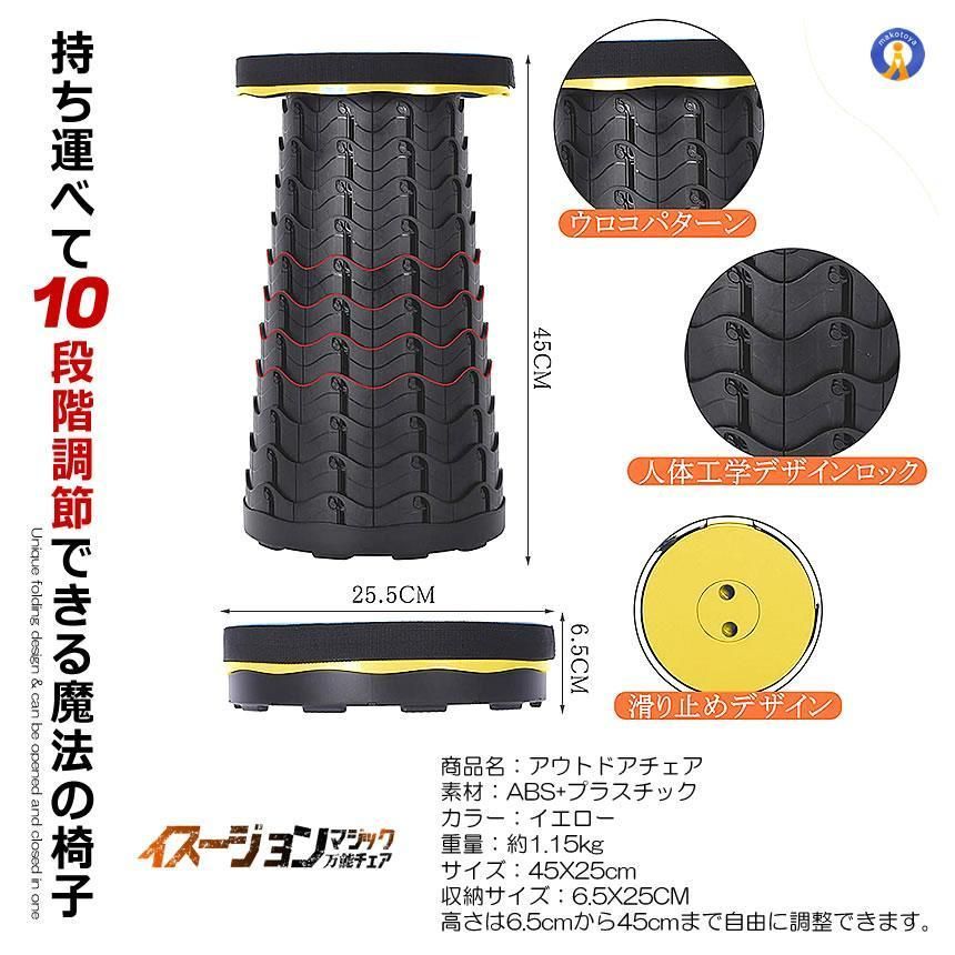 セット 折りたたみ椅子 アウトドア レジャー キャンプ 釣り ハイキング ツーリング 10段階 耐荷重 80 kg ベルト付き 伸縮式 高さ調節 軽量 KABAMOCHE 宅配ヤ