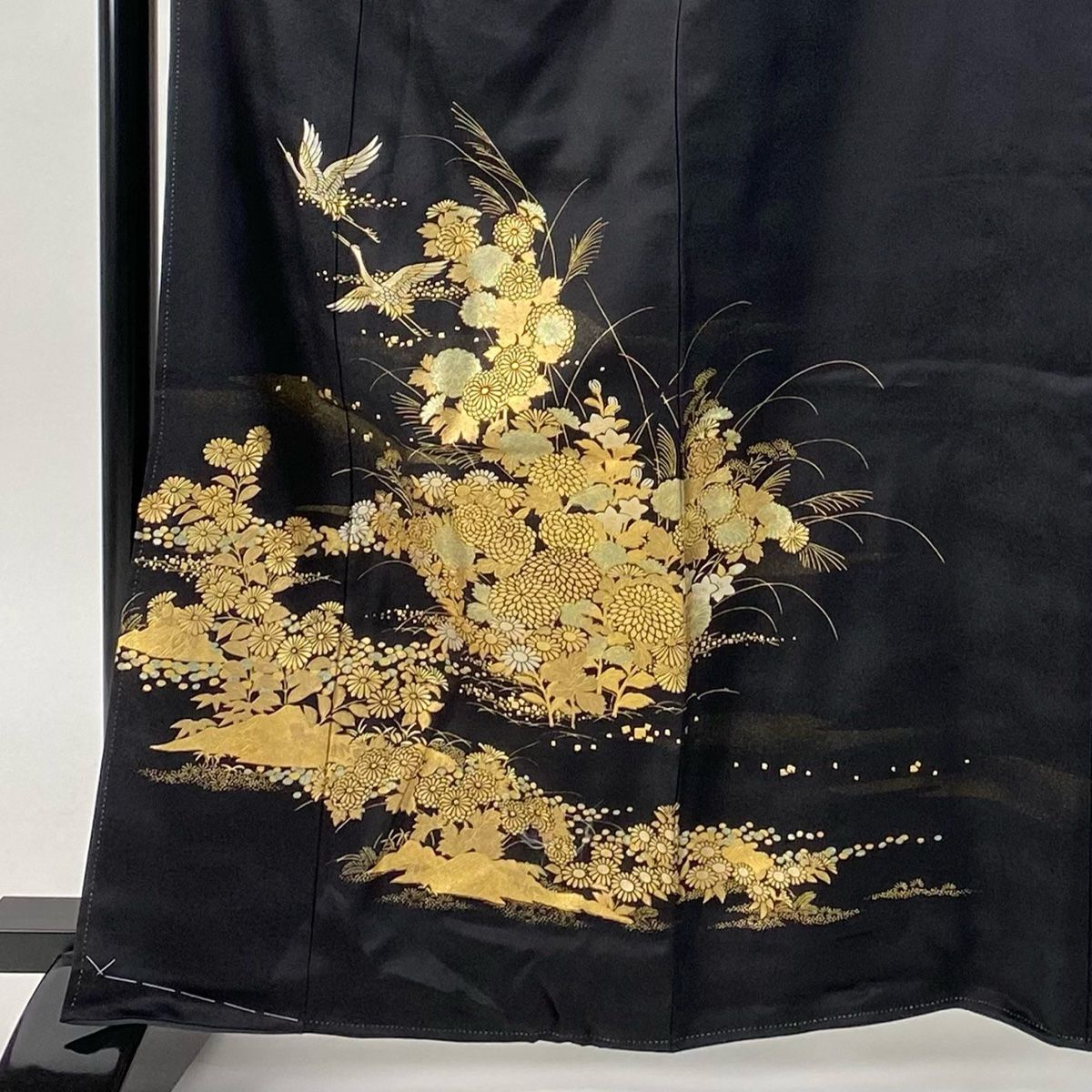訪問着 身丈162.5 cm 裄丈67 M 袷 菊 鶴 金銀彩 黒 正絹 秀品