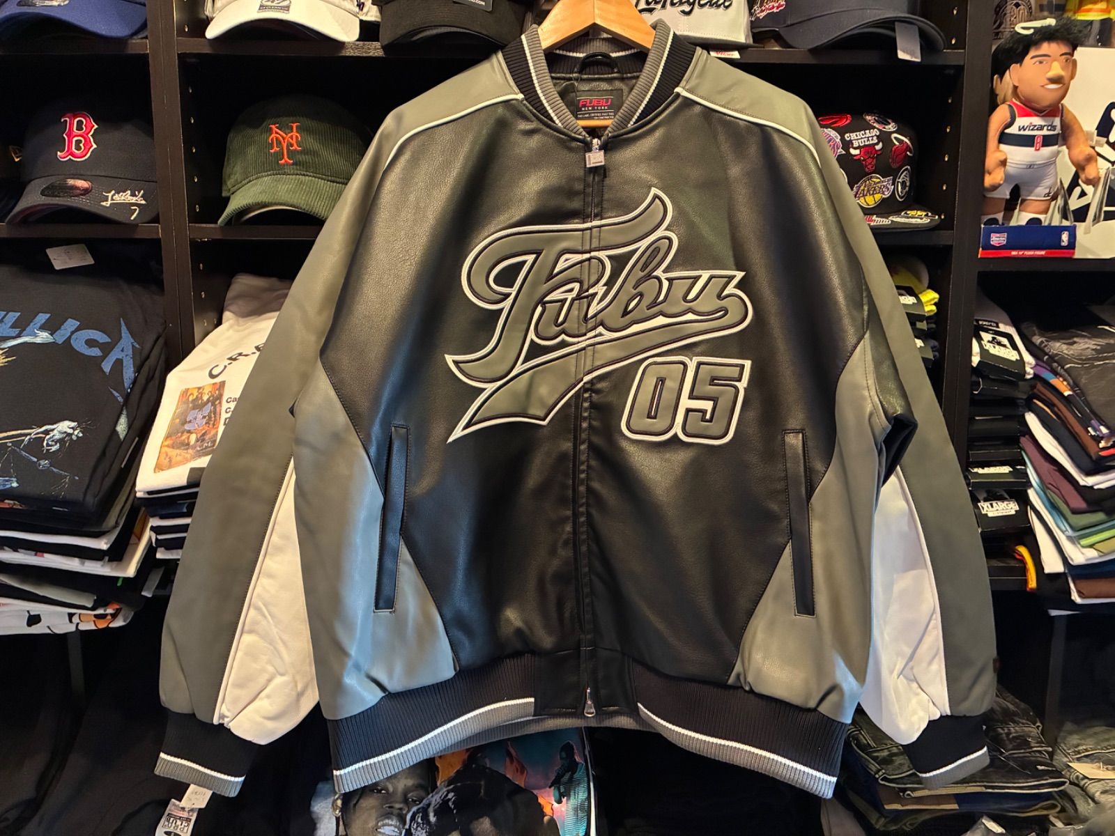 FUBU FAUX LEATHER GAME JACKET フェイクレザー ゲームジャケット FAM-52306 GRAY XLサイズ