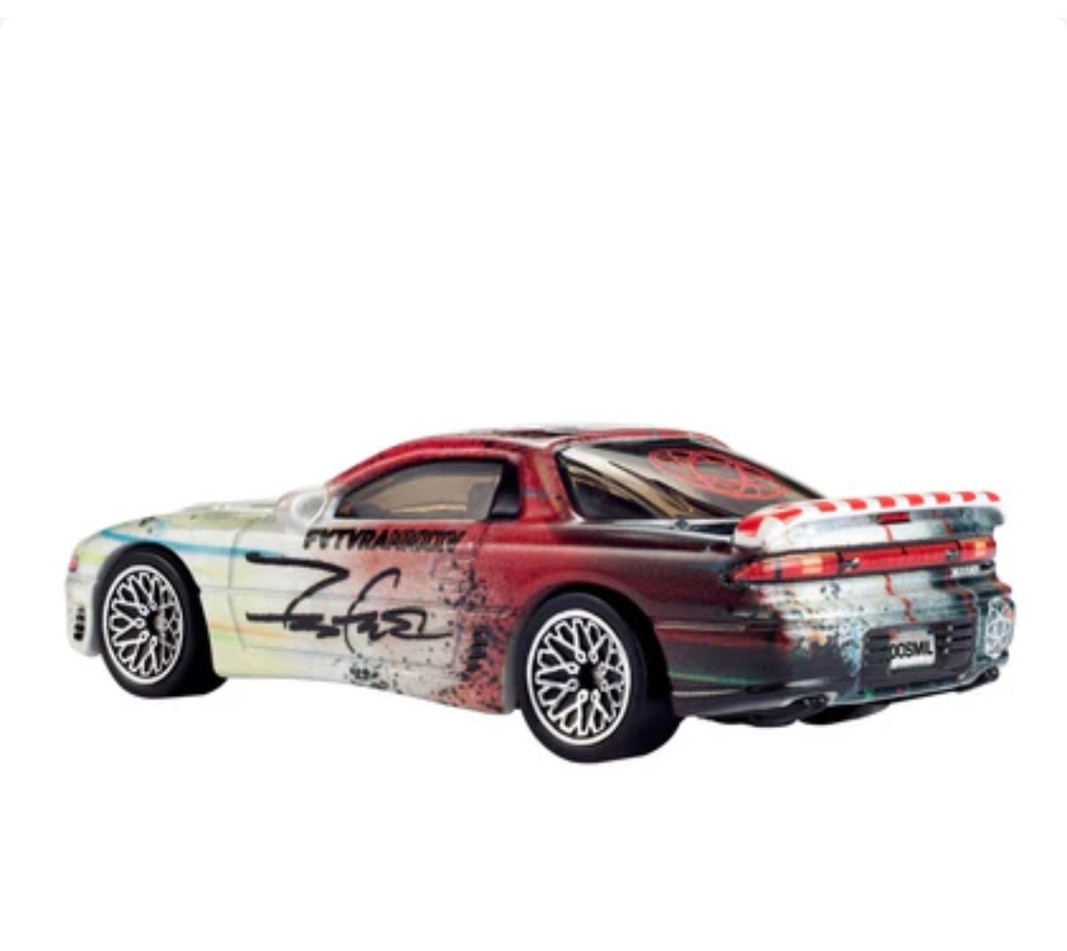 缶を持った男がダイカスト製コレクターズアイテムに新たな足跡を残す。このホットウィール×フューチュラ・ラボラトリーズのコラボレーション作品では、三菱3000GT VR-4がそのキャンバスとなる。著名なアメリカ人アーティスト、フューチュラは1970年代にニューヨークでグラフィティを始め、その後その独特のスタイルを美術ギャラリー、スニーカー、美術館へと広げた。空力設計のツインターボ三菱車は、彼の抽象的なスタイルと日本との繋がり——キャリアと友情において不可欠な要素——を融合させるのに最適な車両である。