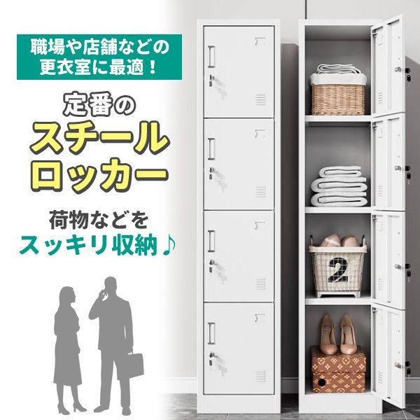 ロッカー スチールロッカー 4人用 ホワイト 白 鍵付き スペアキー付き 1列4段 スチール製