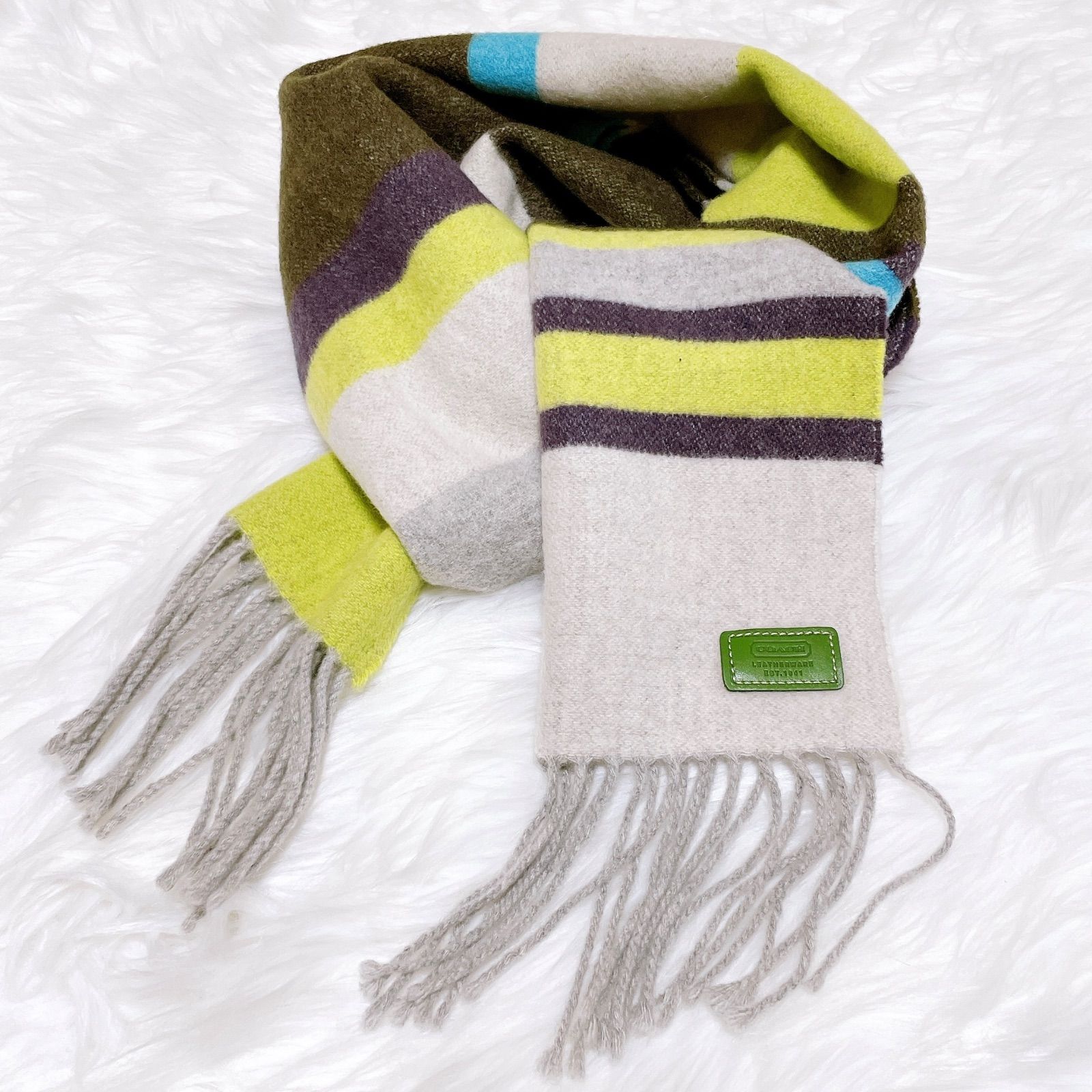 コーチ カシミヤ マフラー ストール チェック柄 スコットランド製 マルチカラー ユニセックス