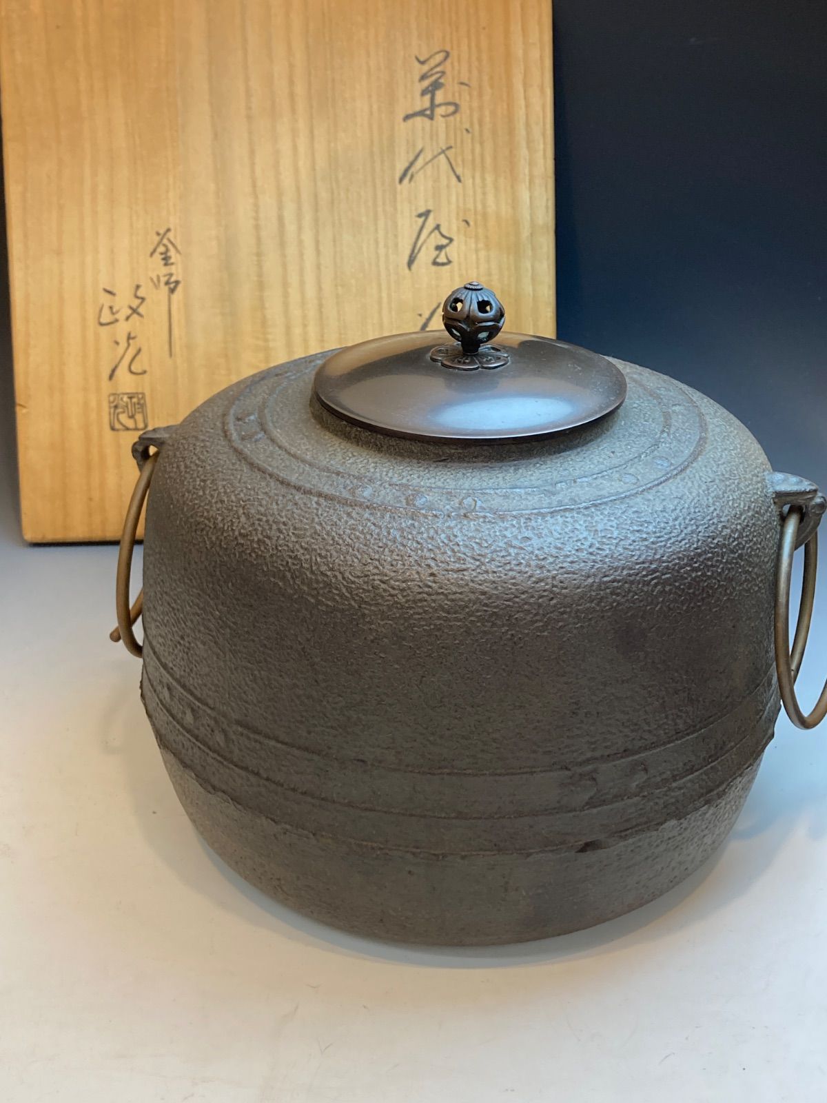 釡師 菊池政光 作 萬代屋釜 釜環付 共箱 茶道具