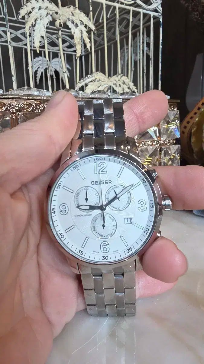 これはガイガクロノグラフメタルウォッチです。すっきりとしたデザインのメタルウォッチで、どんな装いにも合います。普段使いの腕時計として最適なアイテムです。ご不明な点がなければ、すぐに安心してお支払いいただけます!