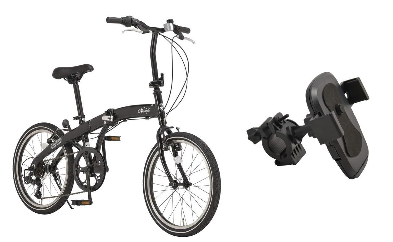 NEXTYLE(ネクスタイル) NX-FB001 自転車 折りたたみ自転車 6段変速 アルミフレーム 52T Vブレーキ ブラック [スマホホルダーセット] 20×1.75