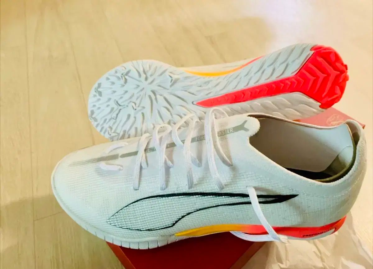 白地にプーマのロゴが入ったフットサルシューズ。底は滑り止めになっているので、フットサルをするときのグリップは良いと思います。260mmサイズでタグがついた新商品です。他に質問がない場合は、すぐに安全な支払いを行ってください!