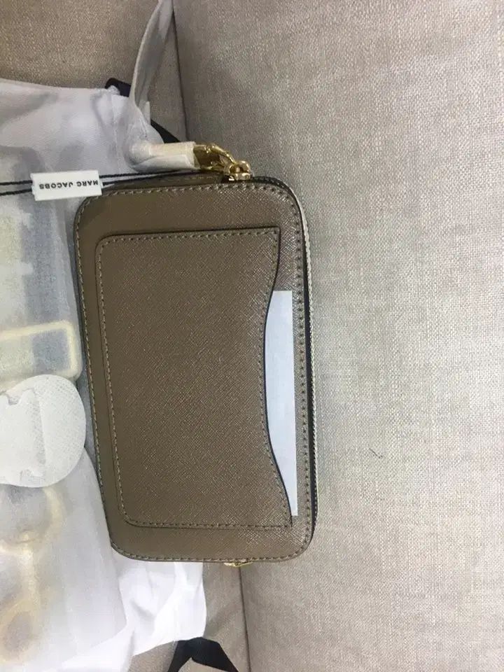 これはマークジェイコブスの新しいスナップショットクロスバッグです。トーンダウンしたベージュ色なので、どんな服装にも合います。バッグストラップにはマーク・ジェイコブスのロゴがあしらわれ、さらに美しく仕上がっています。