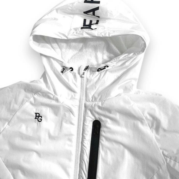 PEARLY GATES パーリーゲイツ ゴルフ タフタ トリコットハイテンション 切替 バックロゴ 2WAYストレッチ ダブルジップ フーディ ロングジャケット ブルゾン ゴルフウェア レディース 055-2224102 定価5.3万 ホワイト ▲059▼51030w03