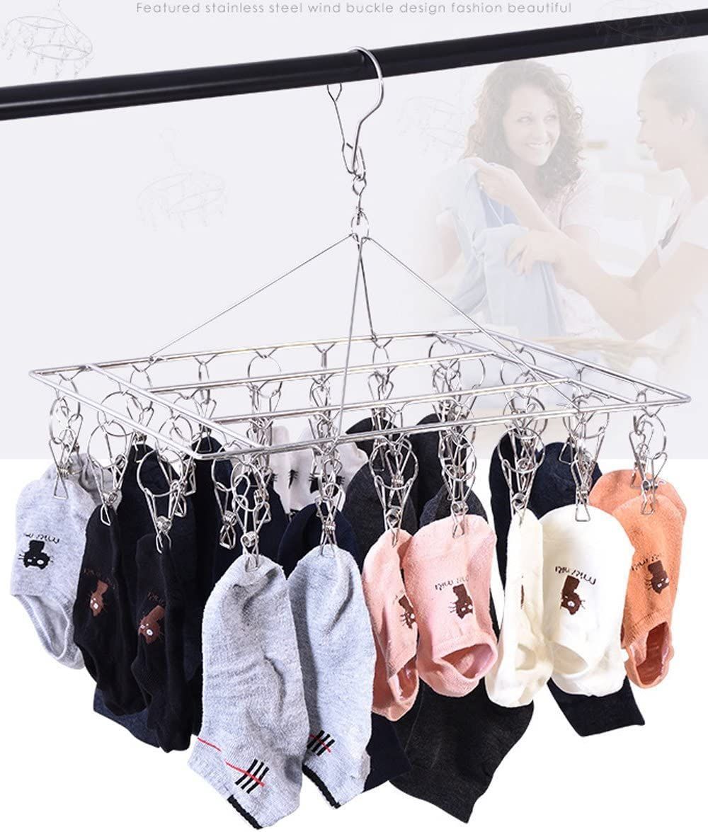 DUOFIRE ピンチハンガー 物干しハンガー 40ピンチ ステンレスハンガー 洗濯用品 ランドリーグッズ からみにくい 防風フック 頑丈 収納便利 (1本)
