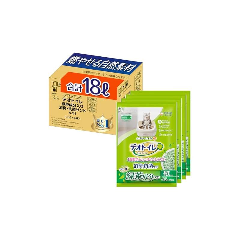 商品名:【燃やせる自然素材】デオトイレ 緑茶成分入り 消臭・抗菌サンド 18L (4.5L×4袋) [猫砂/紙砂] システムトイレ 猫用【.co.jp限定】
