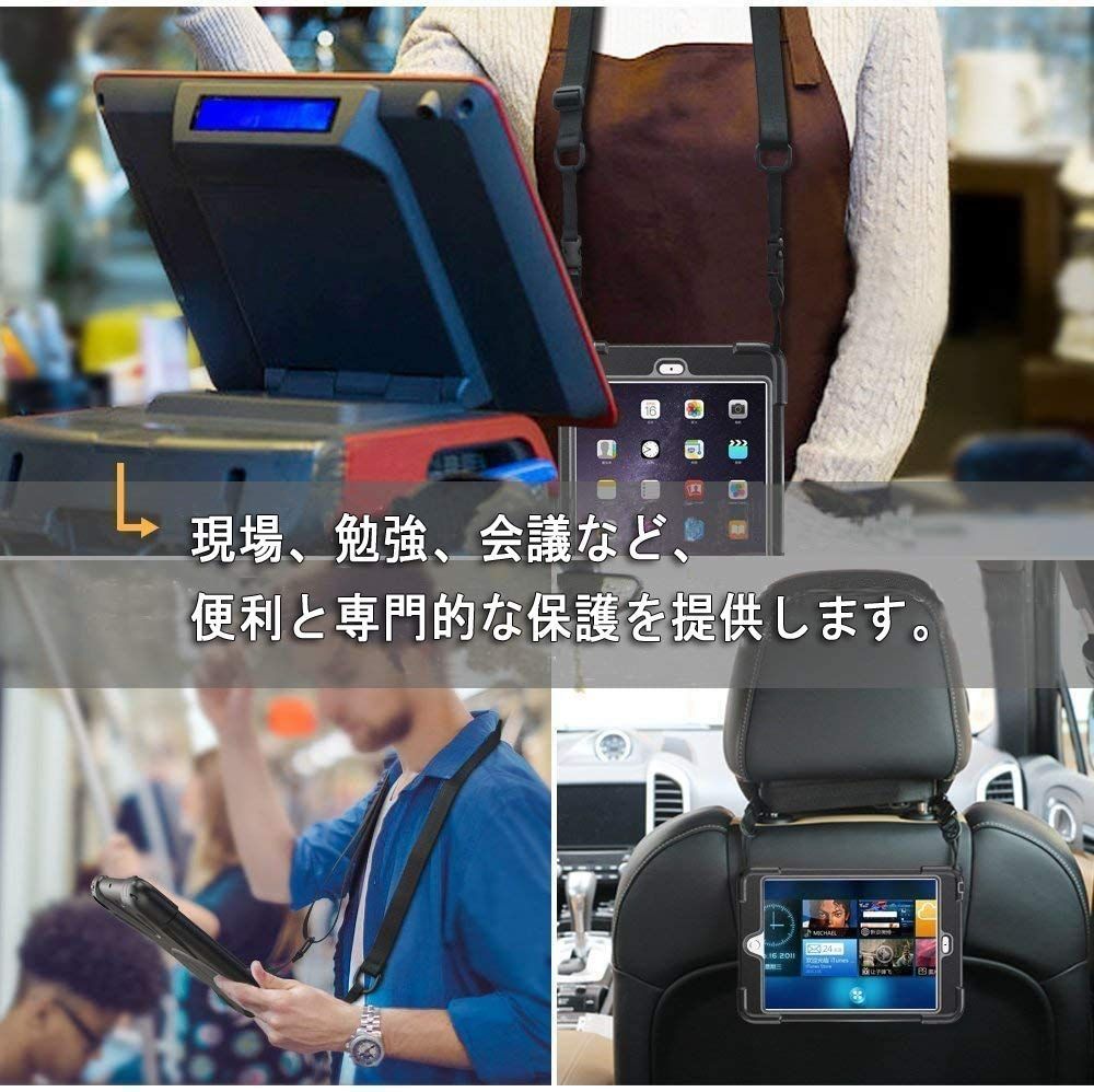 A 1567 1566 モデル キッズ ハード アイパッド 防塵 傷つけ防止 仕事 頑丈 回転 エアー2 ショルダーストラップ 肩掛けー ハンドストラップ スタンド カバー 衝撃吸収 耐衝撃 ケース iPad ブラック