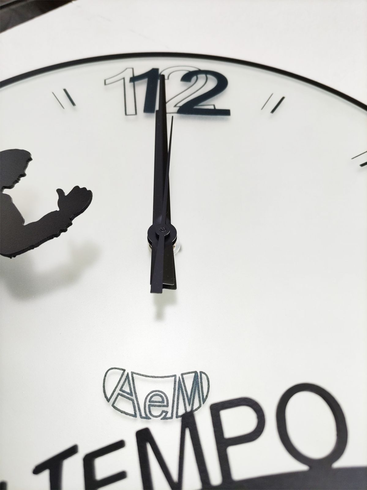 6を握って走り出しているような人物が、立体的な板金加工で躍動感たっぷりに表現されています。一日の限られた時間を大切にしたくなるような、訓戒めいた時計です。本体重量:約1.7㎏。