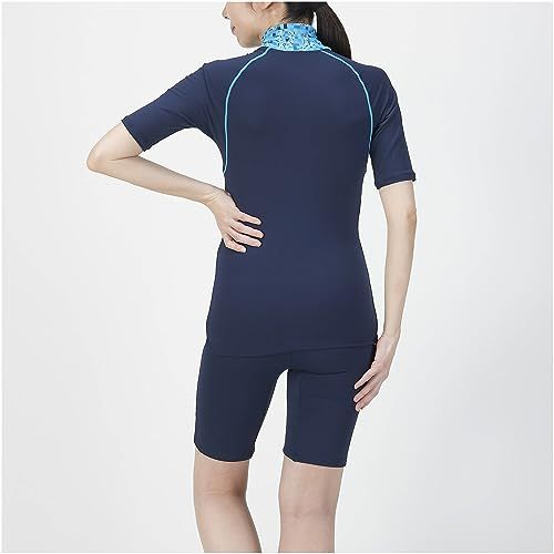 ミズノ MIZUNO 水泳 フィットネス水着 ジム用 レディース セパレーツ 保温 半袖 ネイビー ターコイズ