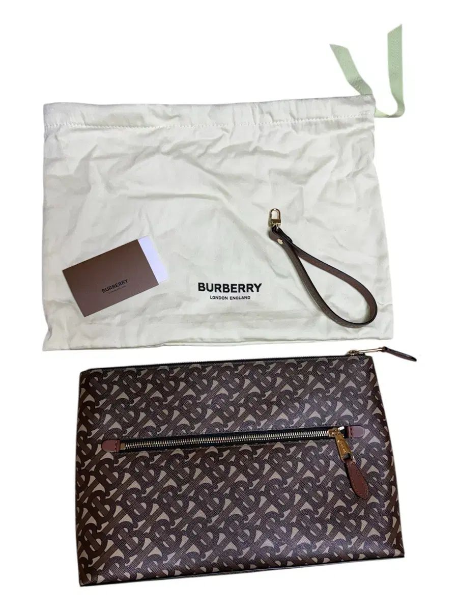 ブラウン カラーのバーバリー モノグラム クラッチ ほぼ新品です。購入時に受け取ったそのまま ダストバッグ、タグ、ストラップ 含む フルセットでお譲りします。高級感のある デザインで、持って 歩くのに良いです。コメント 無ければ すぐに 安全決済 してくだされば結構です!