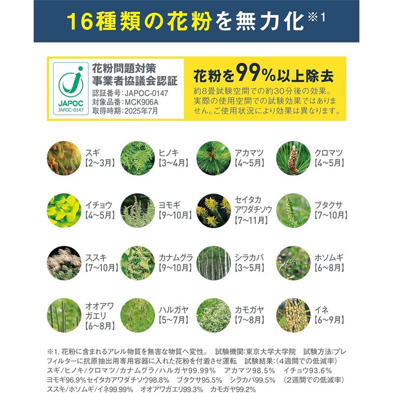 花粉清浄スピード約2倍の「パワフル花粉運転」