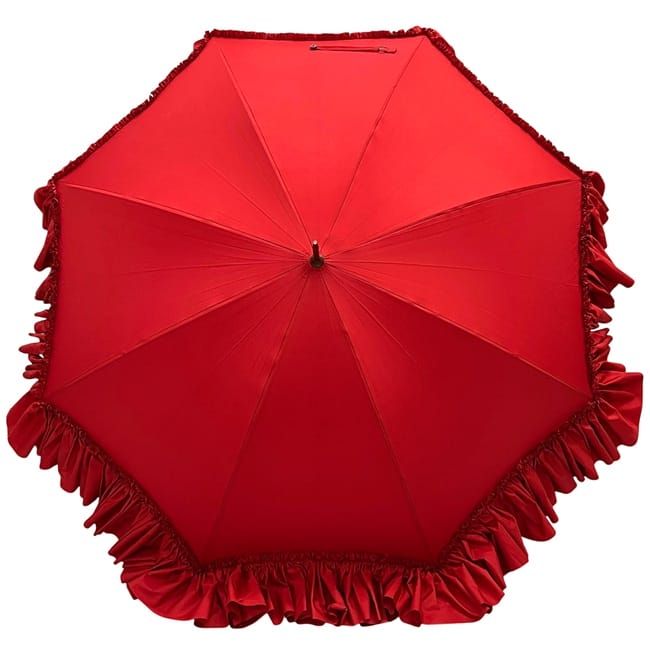 フォックスアンブレラズ 傘 レッド ディープフリル スリムレザー