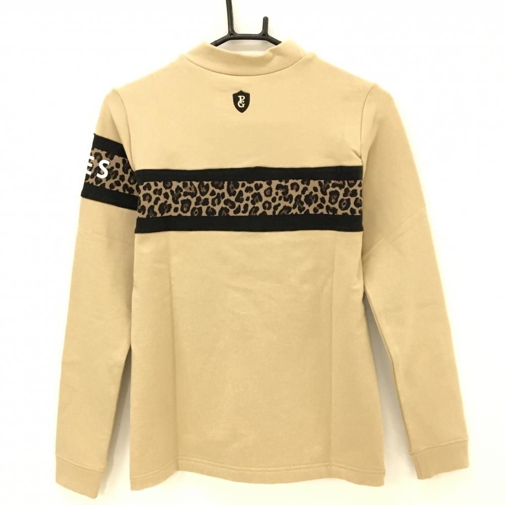 パーリーゲイツ 長袖ハイネックシャツ ベージュ×黒 一部レオパード柄 ロゴ白 レディース 0 S ゴルフウェア PEARLY GATES