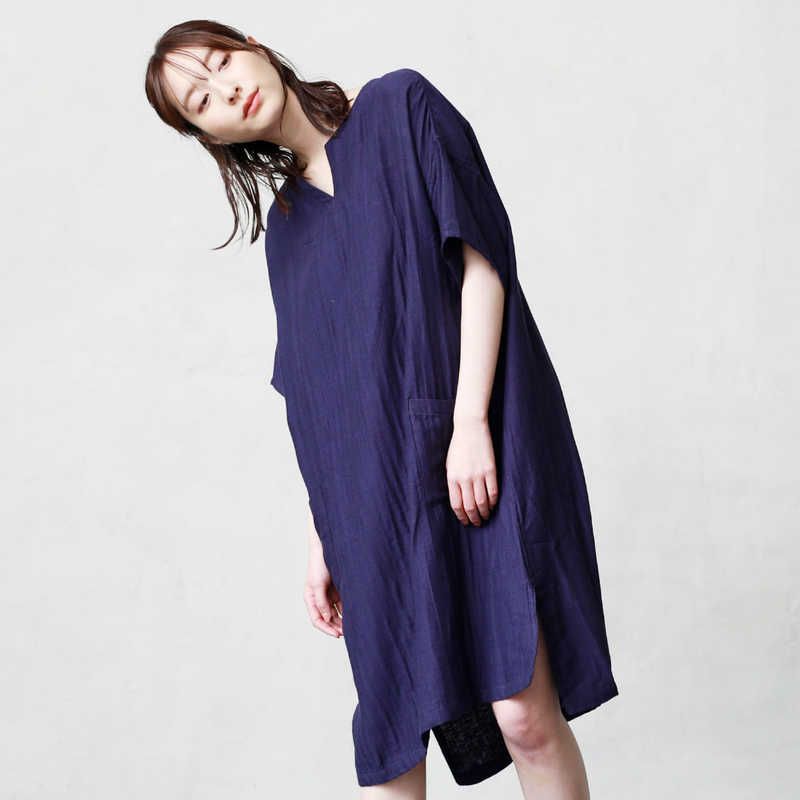 タオル美術館 cococi LDK レディースガーゼルームワンピース Vネック Lサイズ ネイビー