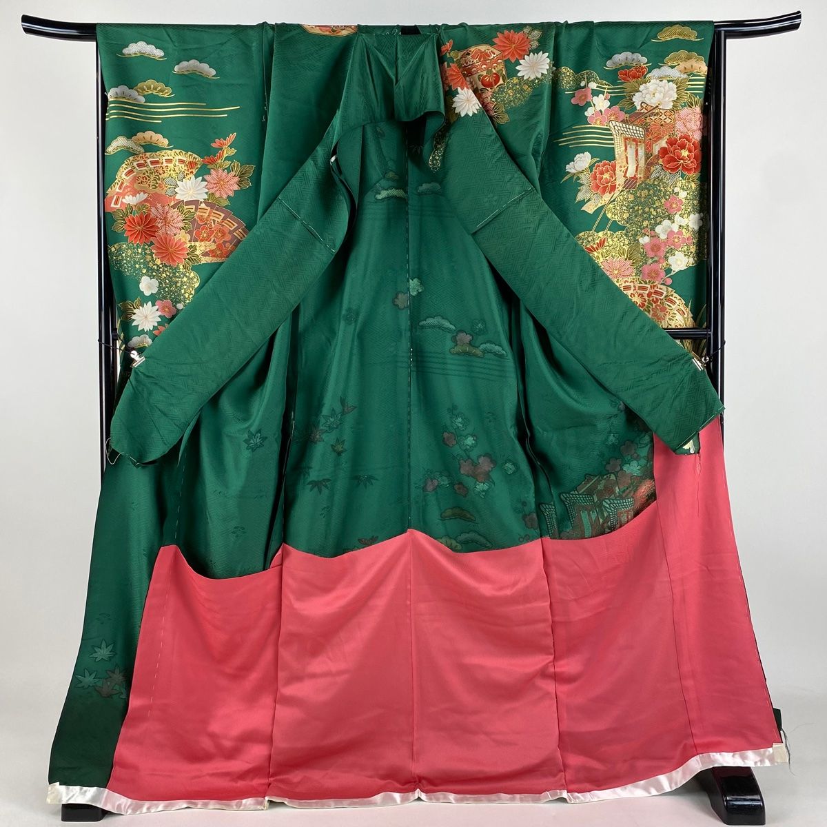 振袖 身丈174.5 cm 裄丈71 未仕立て 仮絵羽 御所車 松竹梅 金彩 緑 正絹 秀品
