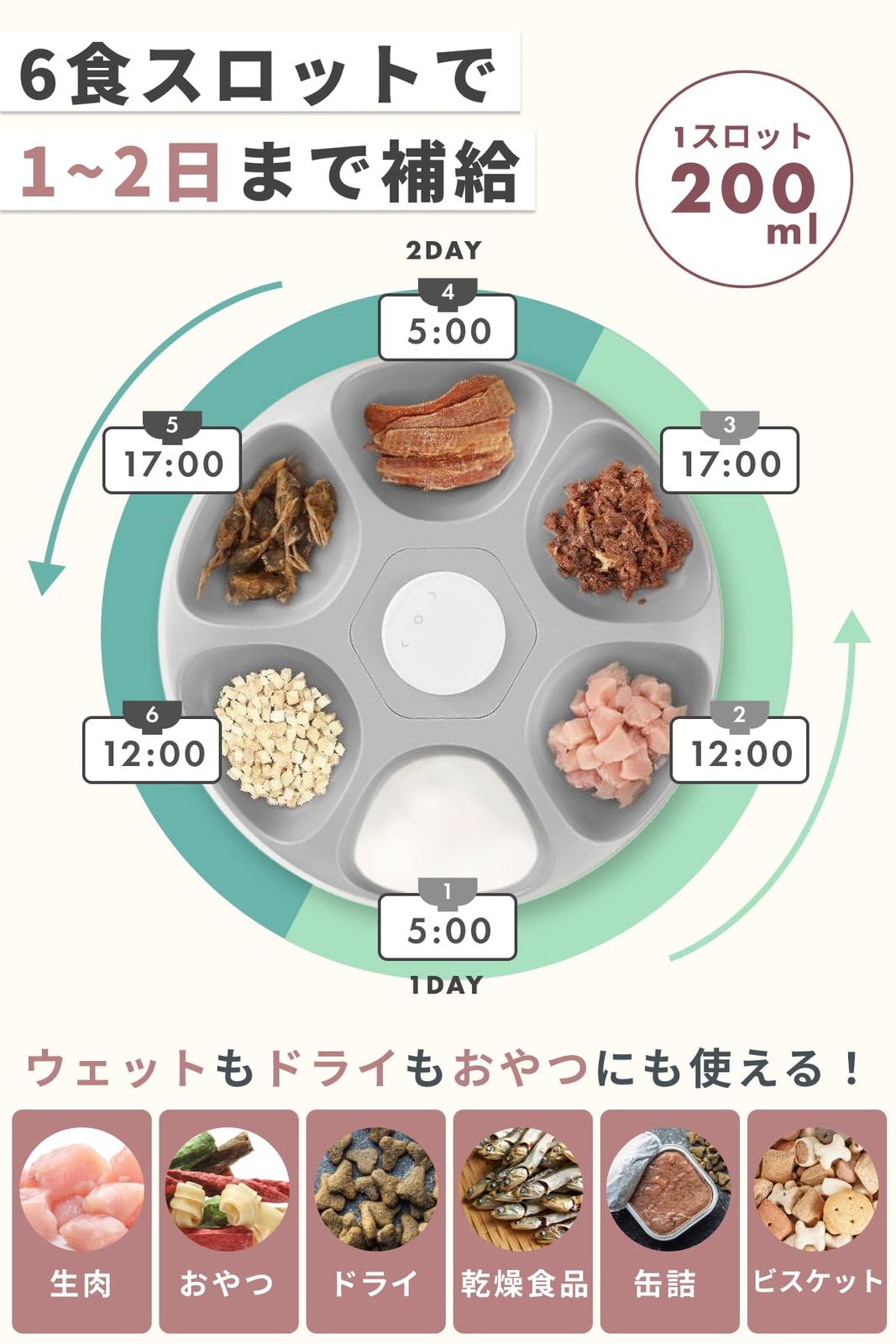2025 給餌器 ウェットフード 猫 ペット WETTO スマート自動給餌器 新鮮さ保つアイスパック付属 犬 タイマー式 電池 6食分 コードレス 缶詰 パウチ 手作り おやつ フリーズドライ