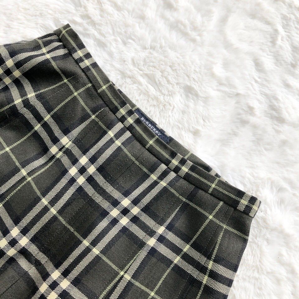 LONDON バーバリーロンドン 大きいサイズ42 ノバチェック柄スカート グリーン系 ロング
