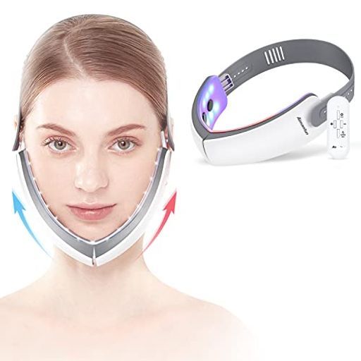 【V顔美顔器】このフェイスベルトは6つの電極パッドと48個のLEDランプを搭載し、赤ライトと青光ライトがあります。付属品は保護メガネ付き、メガネを掛けて、目元ケアも同時に実現できます。二重あご対策として顔全体を引き締め、口周りや頬周りの筋肉に刺激を与え、リフトアップ効果が期待できます。間隙時間にご使用を継続し、3ヶ月後フェイスラインスッキリ。