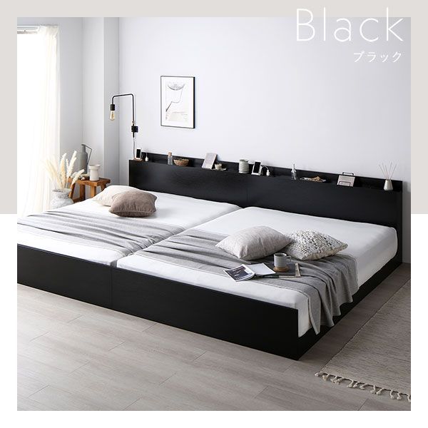 ベッド ワイドキング 280 D ベッドフレームのみ グレージュ 3段階 高さ調整可 棚付き 宮付き 宮棚付き 2口 コンセント付き すのこベッド すのこ ベット ローベッド フロアベッド Asteria アステリア ワイドキングベッド