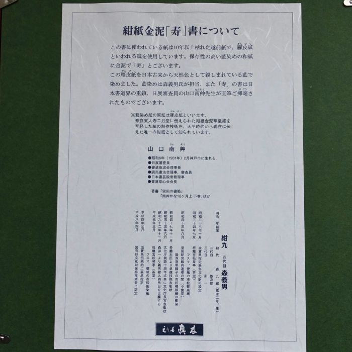 書 紺紙金泥 寿 ことほぎ 山口南艸 やまぐちなんそう 作 金泥 1点もの
