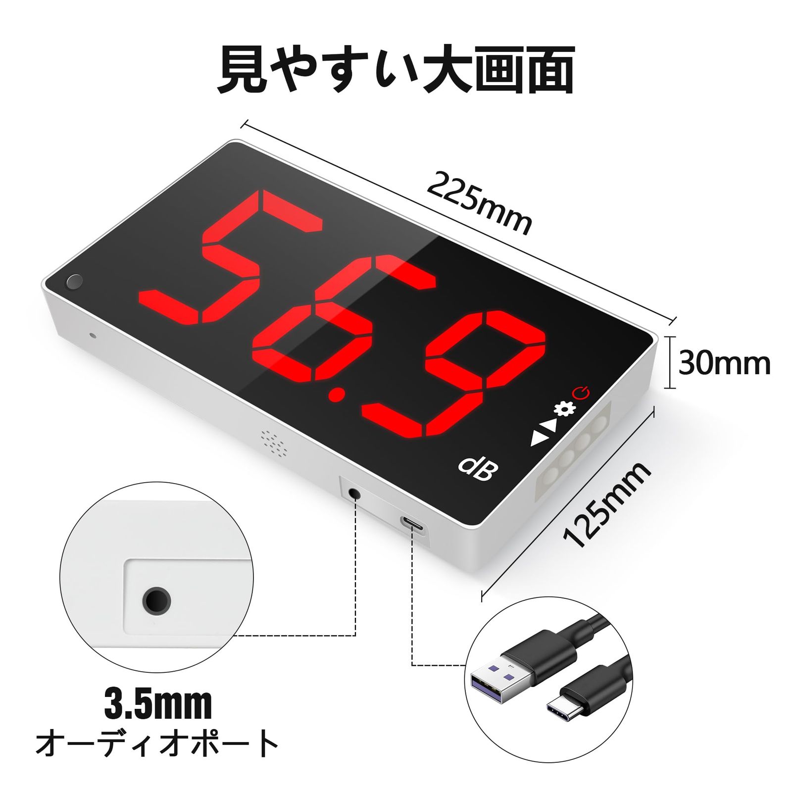 【大型10インチLEDディスプレイ】このデシベルメーターは10インチのLED画面が装備されており、大きなディスプレイのデザインで簡単に読み取ることができます。文字も大きくて、暗い場所でも目立つように見やすくなります。