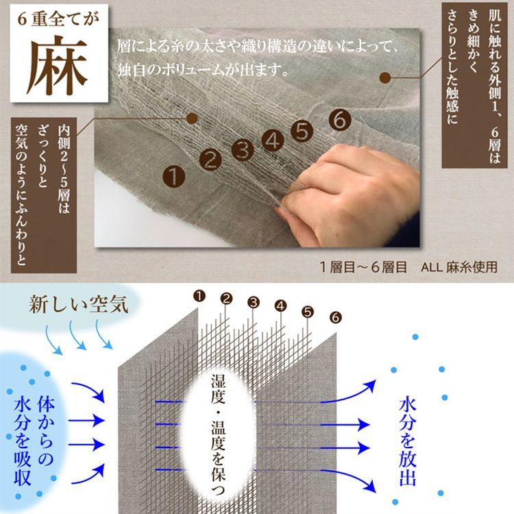 六層すべてに麻を使用した六層構造ガーゼです。