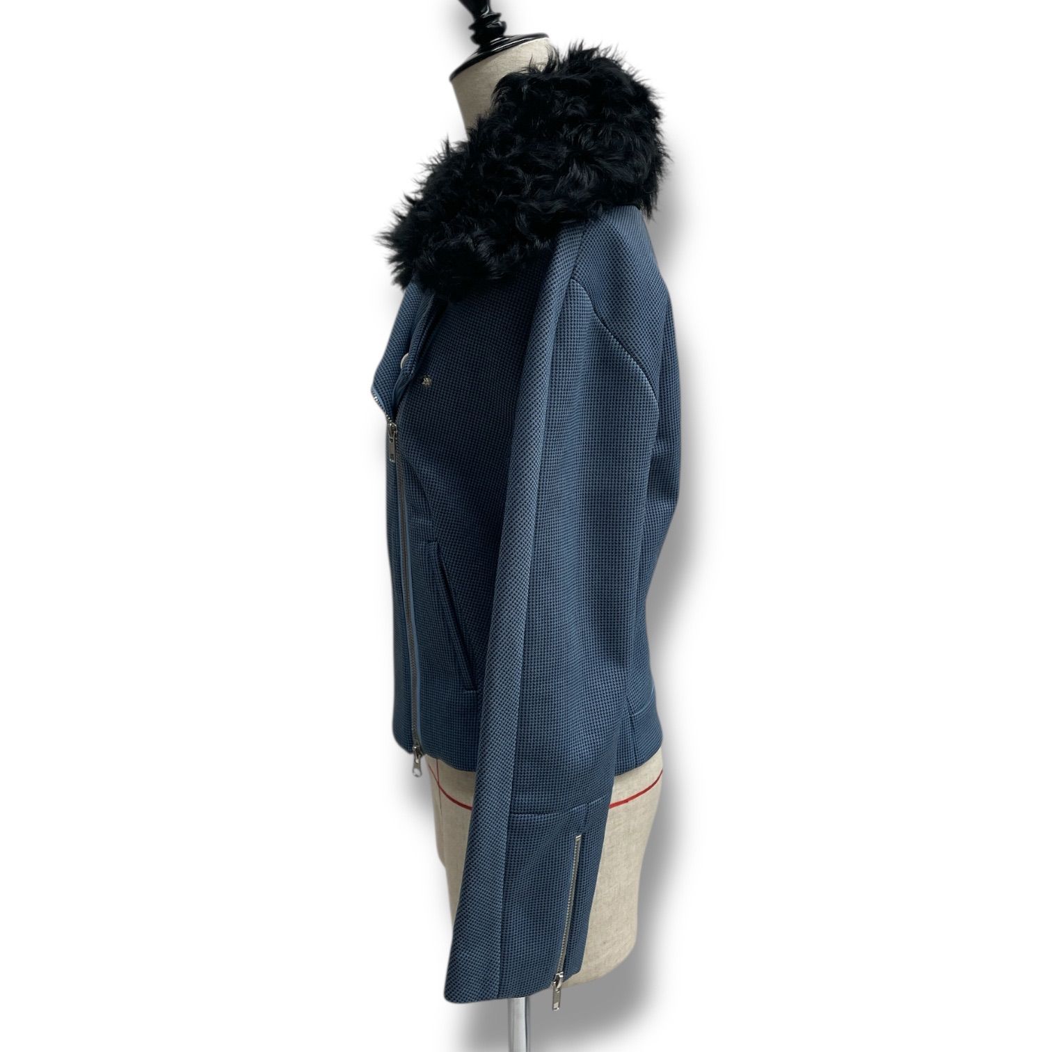 アンティポディウム ファー付き 2 wayライダースジャケット アウター ジャケット ライダースジャケット 袖口ジップアップ ブルー ブラック 青 黒 サイズS レディース 秋 ゴーゴー古着 13 No.1111