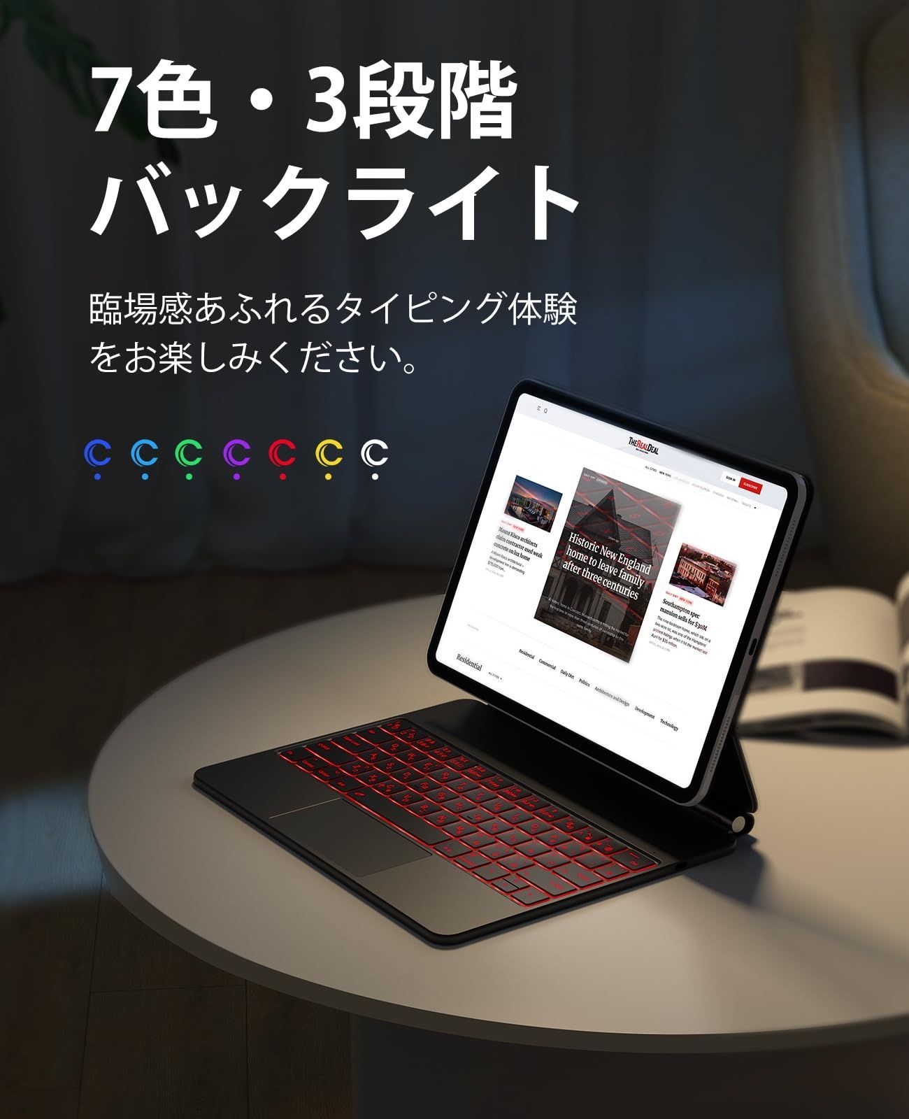 【静音LEDバックライトキー】バックライトの明るさを3段階に調節できる7色のバックライトイルミネーションは、どんな状況下でも快適なタイピング体験をもたらし、ノイズを防ぎ、作業効率を向上させます。 考え抜かれたiPadショートカットデザイン。【Fn】キーと対応するファンクションキーを押すだけで、スクリーンショットの撮影、検索、ページの切り替えなどができます。