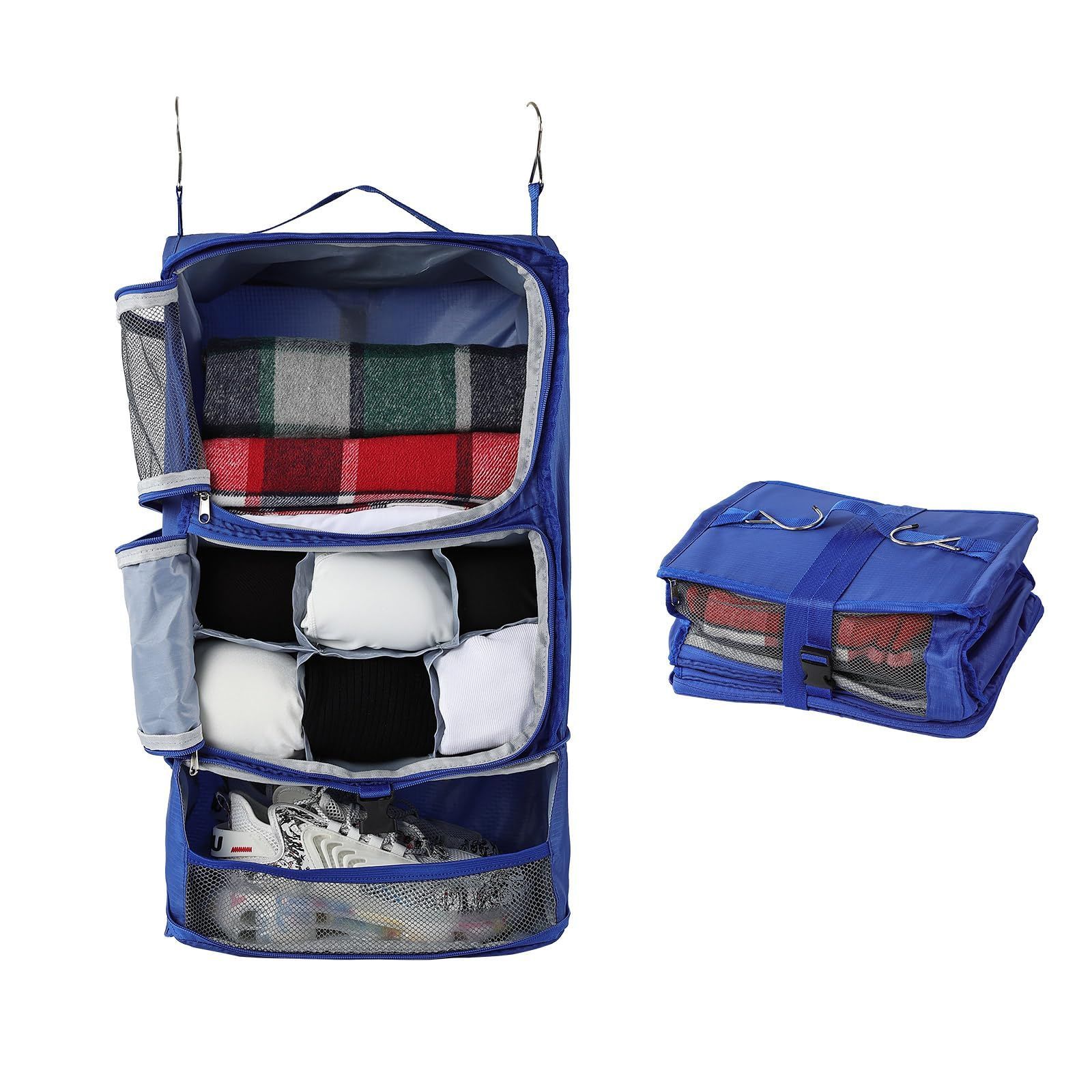 XXL_BLUE タビトラ 吊り下げ収納バック 収納ボックス トラベルポーチ 旅行グッズ 圧縮ポーチ 吊り下げ トラベルクローゼット インナーバッグ 整理収納 分類 衣類 服 洋服入れ 持ち運べる クローゼット 大容量 3段 たびとり 旅ト