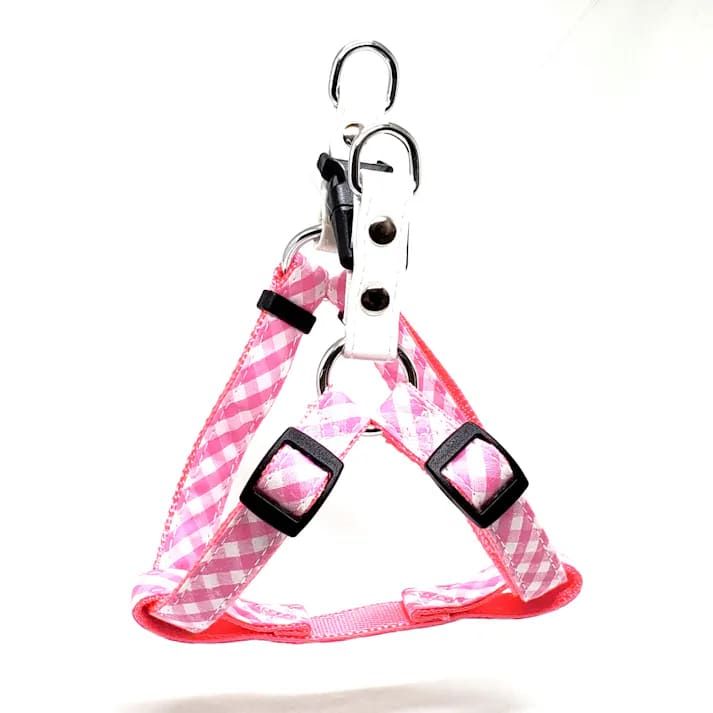 セット リードッグ LEADOGNEWギンガムチェックカンタンハーネスMピンク