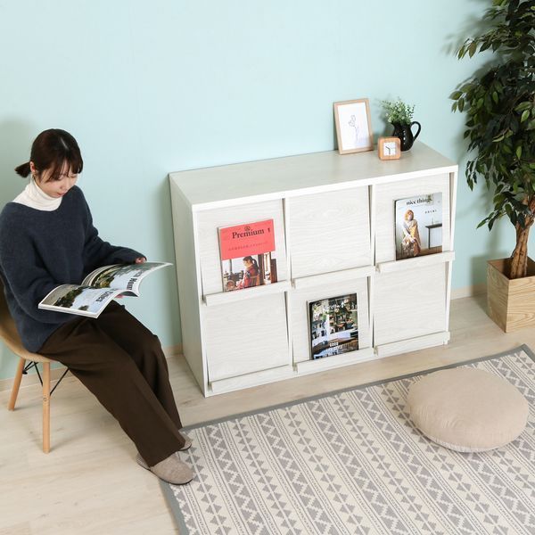 分割された収納スペースと魅せるフラップ扉で、お気に入りの雑誌などを飾ってオリジナルのインテリアとして楽しめます。6つに分割された大容量の収納スペース。収納するアイテムごとに区分けできるので、これ一つでお部屋がすっきり片付きます。フラップ扉にはお気に入りの本や雑誌などを飾り、特別な空間に。幅119×奥行39cmの広い天板を利用して、お気に入りの小物をディスプレイしたり、テレビを置いてもOK!フラップ扉は上部に開くので、ものの出し入れもラクラクです。扉を開けたままにして、オープンラックとしてもお使いいただけます。