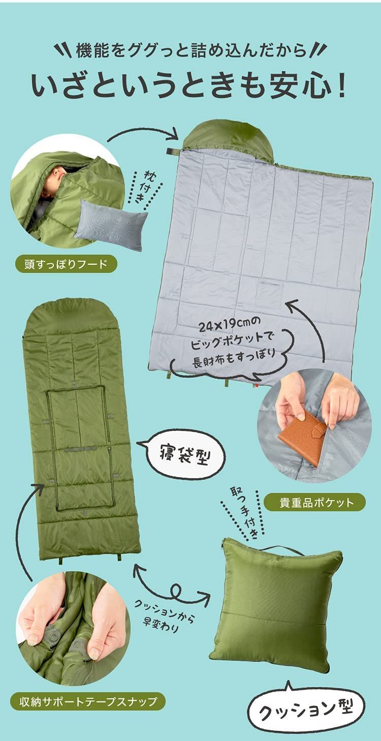 PROIDEA(プロイデア) SONAENO クッション型多機能寝袋 オリーブグリーン